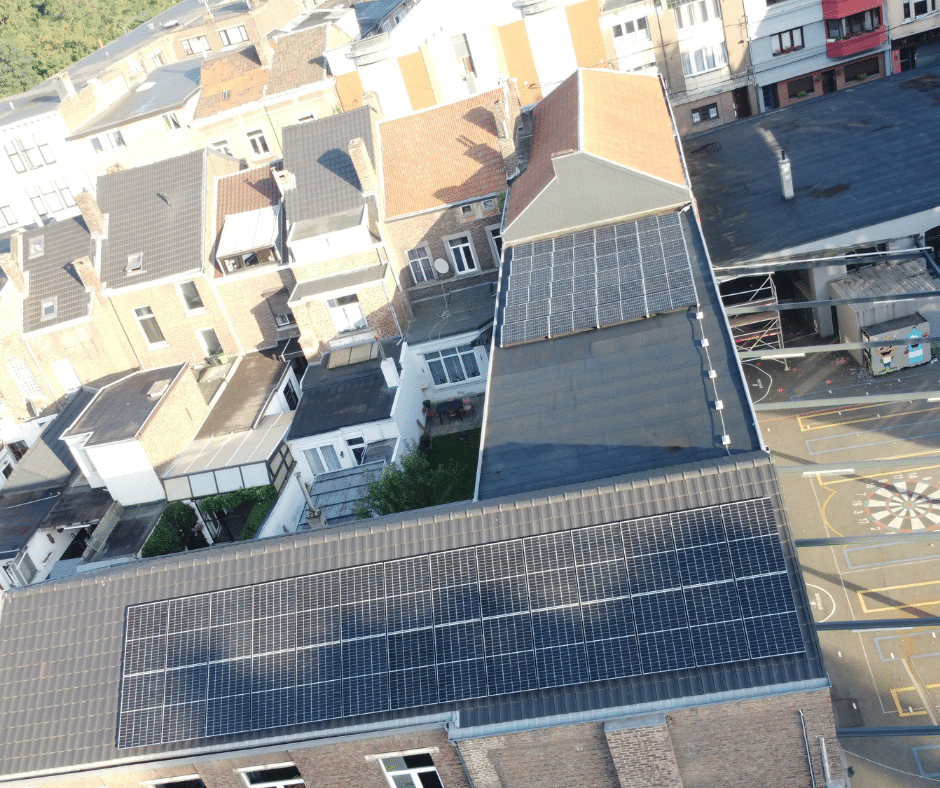 La transition énergétique au coeur de l’éducation : installation de 52 panneaux photovoltaïques sur les toits de l’école et engagement de performance et de maintenance pendant 10 ans, grâce à notre partenariat avec le SeGEC.